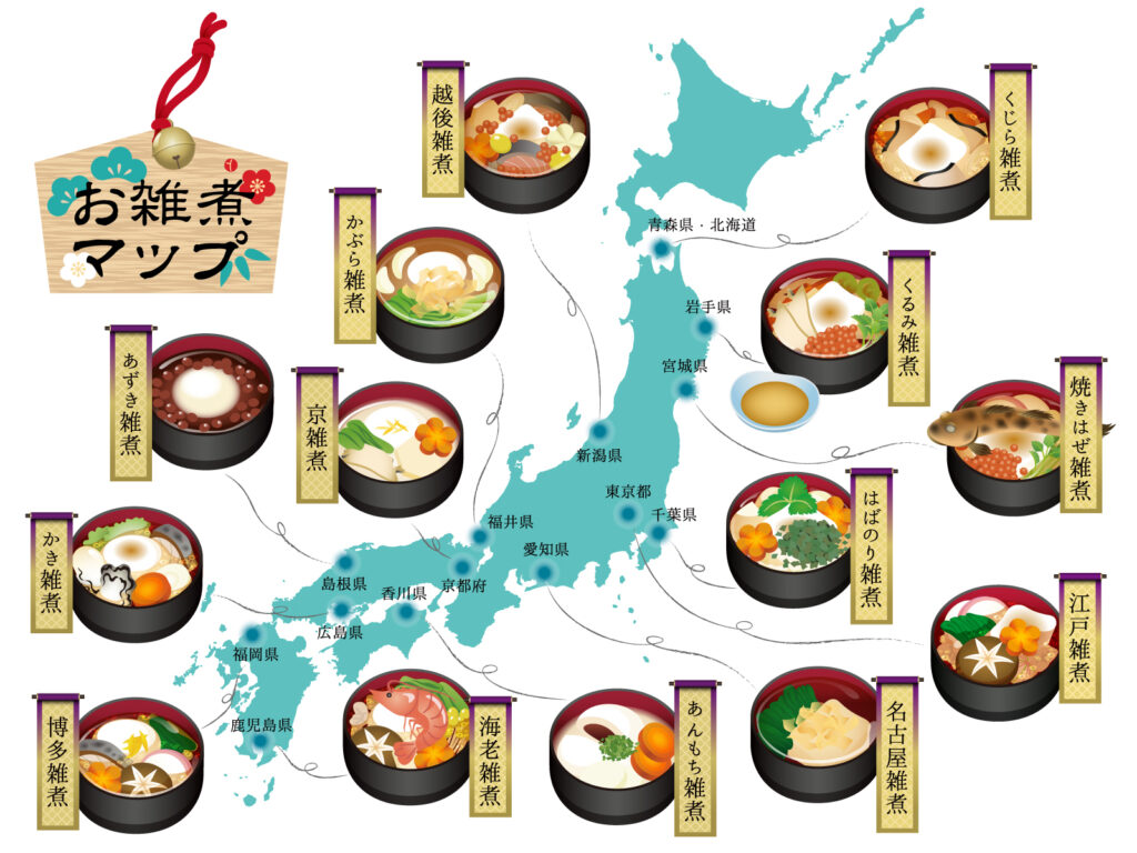 日本でこの時期、よく話題にのぼるのが「各地のお雑煮」です。お雑煮とは、お餅を温かい汁に入れた、日本の正月には欠かせない料理。日本人なら誰もが知っていますが、実は人によって思い浮かべるお雑煮の姿がまったく違うことがあります。材料も見た目も味付けも地域ごとに大きく異なるからです。