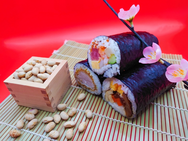 今くらいの時期、日本のコンビニやスーパーで太巻き寿司の広告を見かけたことはありませんか?その広告を見てみると、お肉たっぷりの焼肉太巻き寿司、いくらがこぼれる贅沢な海鮮太巻き寿司、太巻き寿司風に作られたロールケーキなど、「太巻き寿司」をキーワードにした商品になっているはず。実はこれ、一般的な太巻き寿司ではなく「恵方巻(えほうまき)」と言って、節分に食べるものなんです。